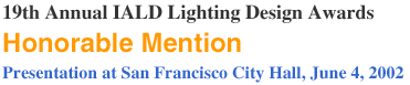 IALD(国際照明デザイナーズ教会)とは、米国を拠点に世界的な照明演出の分野の発展に寄与している団体で、その主な活動内容としては「LIGHTFAIR INTERNATIONAL」を主催し、その見本市の併設企画として世界中の照明演出分野に於ける秀作にたいして「Lighting Design Award」を授与しています。